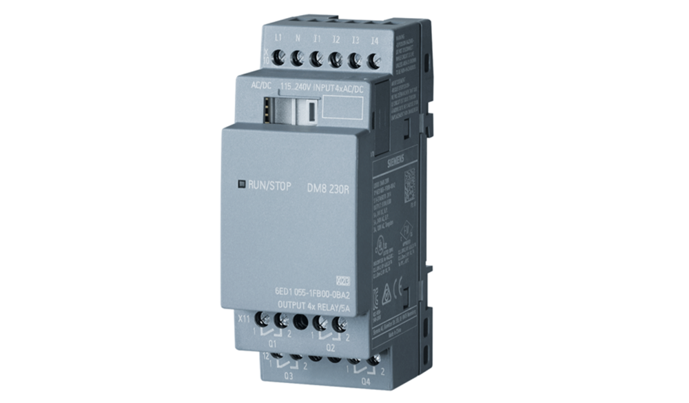 DM8 230R, FA/I/O: 230V/230V/RELÉ, 2TE, 4 DI/4 DO PARA LOGO 8,