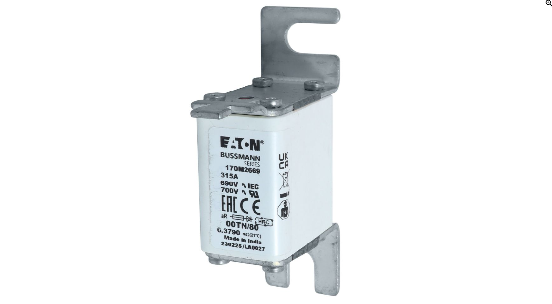 170M2669.FUSIBLE DE ALTA VELOCIDAD, 315 A, CA 690 V, DIN 00, AR, DIN, IEC, INDICADOR ?NICO, TERMINALES DE SUJECI?N ACTIVOS. MARCA: BUSSMAN. N. PARTE: 170M2669