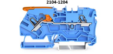 BORNE PASANTE DE 2 CONDUCTORES; TIPO DE ACTUACION: PALANCA; SECCION TRANSVERSAL: 4 MM?; MARCADO: LATERAL Y CENTRAL; MONTAJE: DIN 35; TECNOLOGIA DE CONEXION: PUSH-IN CAGE CLAMP?; COLOR: AZUL; PAQUETE: 50 PIEZAS; MARCA: WAGO; NO. PARTE: 2104-1204