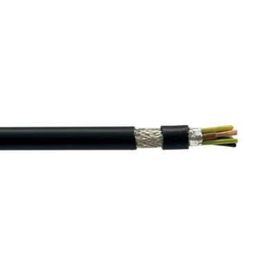 402030060 CABLE VFD DE BAJA CAPACITANCIA, DOBLE BLINDAJE LIBRE DE HAL?GENOS, FLEXIBLE CLASE 5 CON RADIO DE CURVATURA MINIMO DE 6 X ?, TENSI?N DE SERVICIO 600/1000V, AISLAMIENTO TERMOFIJO, IDENTIFICACI?N COLORES TRES CONDUCTORES Y TRES DE COLOR VERDE/AMARILLO, 3 DE FASES Y TRES TIERRAS (SIM?TRICO), CINTA DE ALUMINIO POLI?STER Y MALLA DE COBRE ESTA?ADO COBERTURA 75% CON CUBIERTA LIBRE DE HAL?GENOS TIPO TM7 ACORDE CON HD21.14 S1 ANEXO B COLOR NEGRO CON RESISTENCIA A RAYOS UV, TEMPERATURA DE SERVICIO 90?C, INSTALACI?N FIJA UNSER KABEL VFD 3 2XSLCH CLASE 5 1KV90?C 3X 10AWG (6 MM?)+3G 18AWG(1.0MM? (18 AWG) MARCA UNSER KABEL No PARTE 402030060