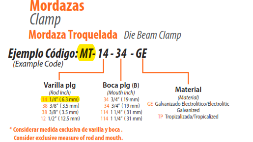 MORDAZA TROQUELADA PARA VARILLA DE 1/4″ FABRICADO EN ACERO GALVANIZADO NO, DE PARTE ATNMT143834IM MARCA ATN