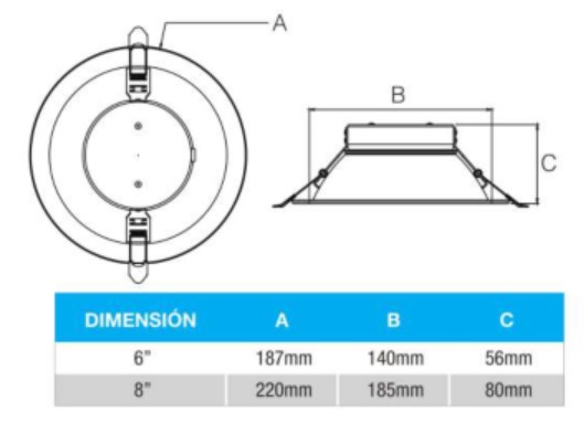 DOWNLIGHT RONDO 8″ DIMEABLE 0-10V DRIVER REMOTO 100-277 V, CON AJUSTE DE 18, 24 Y 30 W, Y AJUSTE EN TEMPERATURA DE 2700, 3000, 4000 Y 5000°K; MODELO BL33-82500LED; MARCA BEGHELLI